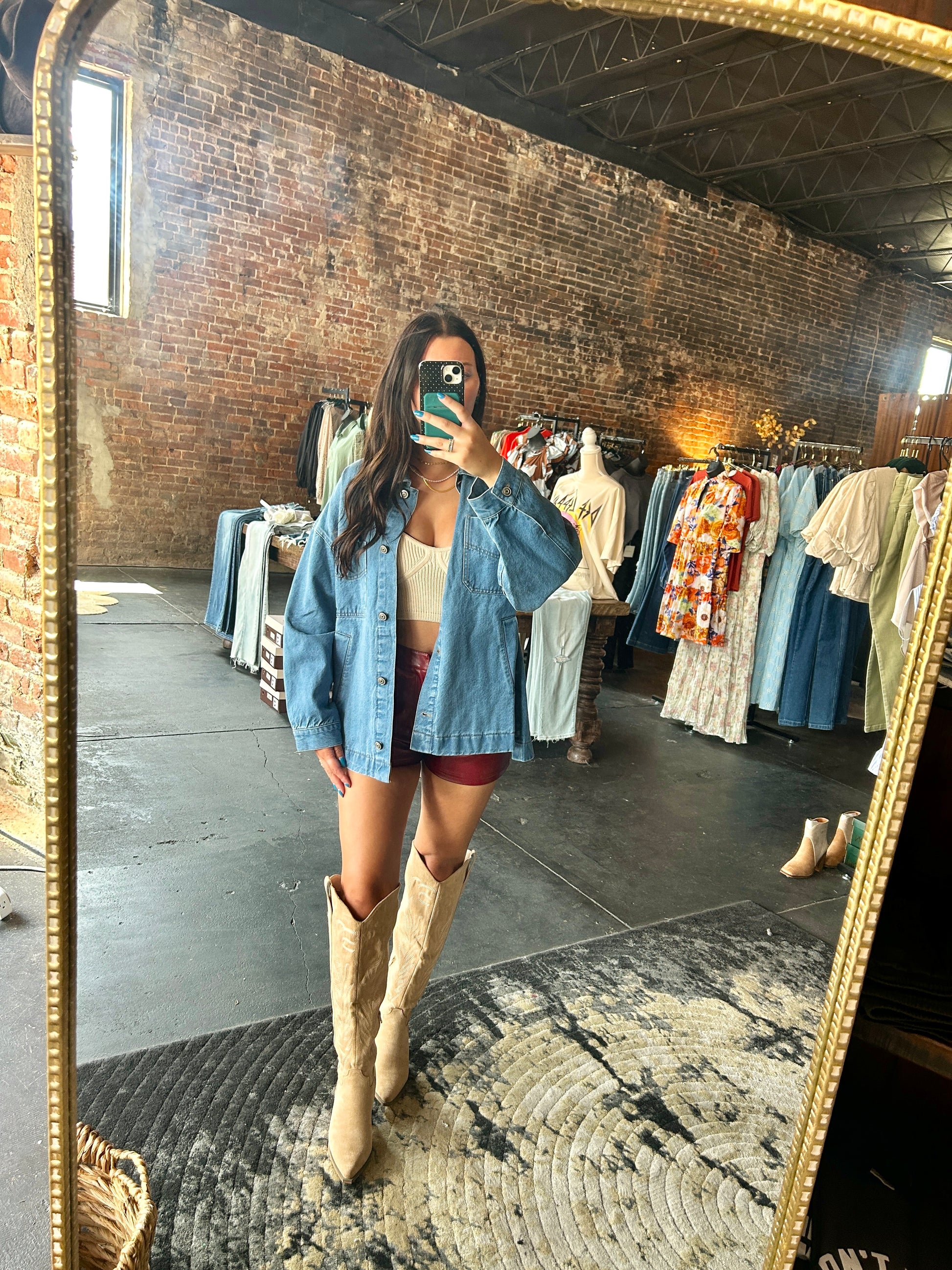 Laid-back and endlessly wearable, this oversized denim jacket features structured seaming and classic utility pockets. A go-to layer for casual cool days.