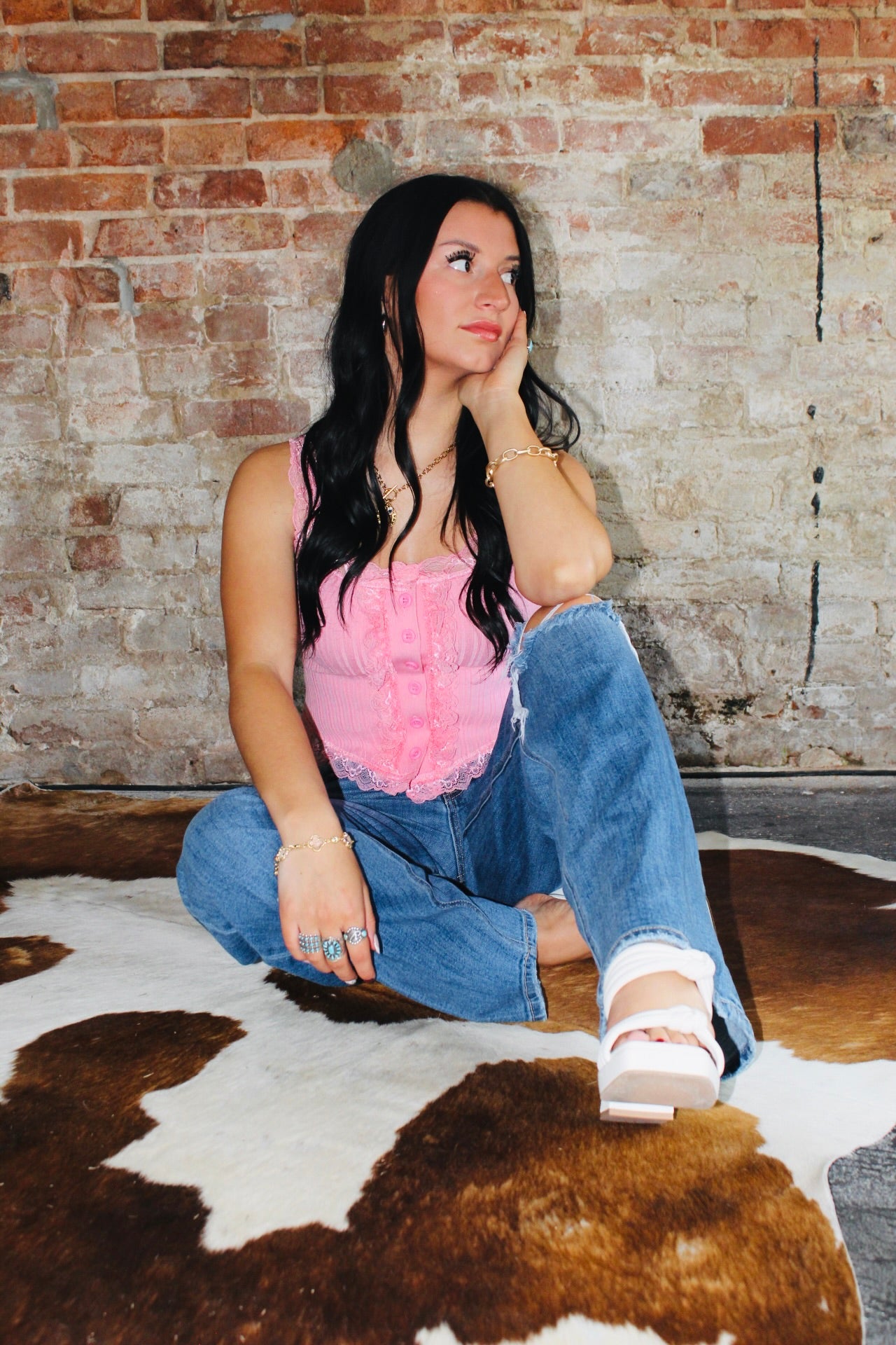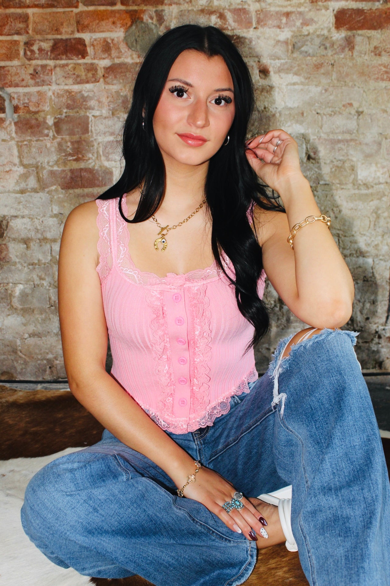 The cutest tank for spring or even Valentine's Day! Thick ribbed material and has lots of stretch!